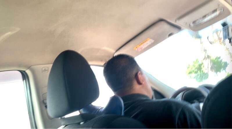 Zo onopvallend mogelijk probeerde ik een filmpje van de chauffeur te maken. Ik dacht, als er wel iets geks gebeurt, heb ik in elk geval beeld van die man.
